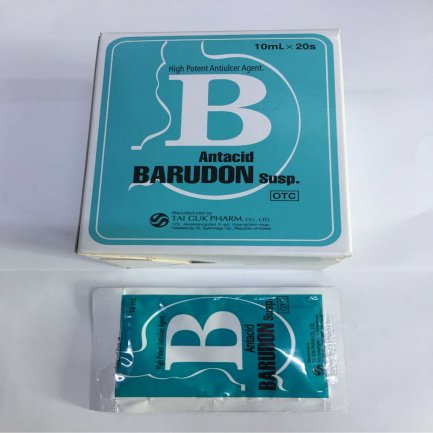 Hỗn dịch BARUDON có chứa Oxethazaine là tác nhân gây tê niêm mạc đường tiêu hóa. Tác động này làm giảm cơn đau dạ dày do các bệnh niêm mạc đường tiêu hóa như: viêm dạ dày, loét đường tiêu hóa và các triệu chứng thực thể như: nôn, ói mửa và khó chịu ở dạ dày. BARUDON còn chứa AI(OH)3 và Mg(OH)2 là các chất làm trung hòa acid dạ dày và tác dụng kháng acid nhanh. Thuốc có hiệu quả tốt trong viêm dạ dày và loét dạ dày tá tràng.