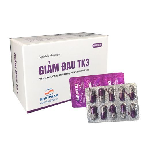 - Uống dài ngày liều cao paracetamol làm tăng nhẹ tác dụng chống đông của coumarin và dẫn chất indandion. Cần phải chú ý đến khả năng gây hạ sốt nghiêm trọng ở người bệnh dùng đồng thời phenothiazin và liệu pháp hạ nhiệt. Uống rượu quá nhiều và dài ngày có thể làm tăng nguy cơ gây độc cho gan của paracetamol. - Thuốc chống co giật (gồm phenytoin, barbiturat, carbamazepin) gây cảm ứng enzym ở microsom thể gan, có thể làm tăng tính độc hại gan của paracetamol do tăng chuyển hóa thuốc thành những chất độc hại với gan. Ngoài ra, dùng đồng thời isoniazid với paracetamol cũng có thể dẫn đến tăng nguy cơ độc tính với gan, nhưng chưa xác định được cơ chế chính xác của tương tác này. Nguy cơ paracetamol gây độc tính gan gia tăng đáng kể ở người bệnh uống liều paracetamol lớn hơn liều khuyên dùng trong khi đang dùng thuốc chống co giật hoặc isoniazid. Thường không cần giảm liều ở người bệnh dùng đồng thời liều điều trị paracetamol và thuốc chống co giật; tuy vậy, người bệnh phải hạn chế tự dùng paracetamol khi đang dùng thuốc chống co giật hoặc isoniazid. - Phentolamin và các thuốc chẹn α-adrenergic: Tác dụng tăng huyết áp của phenylephrin sẽ giảm, nếu trước đó, đã dùng thuốc chẹn α-adrenergic như phentolamin mesylat. Phentolamin có thế được dùng để điều trị tăng huyết áp do dùng quá liều phenylephrin - Propranolol và thuốc chẹn β -adrenergic: Tác dụng kích thích tim của phenylephrin hydroclorid sẽ bị ức chế bằng cách dùng từ trước thuốc chẹn β-adrenergic như propranolol. Propranolol có thế được dùng để điều trị loạn nhịp tim do dùng phenylephrin. - Thuốc trợ đẻ (oxytocin): Khi phối hợp phenylephrin hydroclorid (một thuốc gây tăng huyết áp) với thuốc trợ đẻ, tác dụng tăng huyết áp sẽ tăng lên - Phenylephrin hydroclorid không được dùng phối hợp với epinephrin hoặc thuốc cường giao cảm khác, vì nhịp tim nhanh và loạn nhịp tim có thể xảy ra - Thuốc mê: Phối hợp phcnylephrin hydroclorid với thuốc mê là hydrocarbon halogen hóa (ví dụ cyclopropan) làm tăng kích thích tim và có thể gây loạn nhịp tim. - Không được dùng phenylephrin hydroclorid uống phối hợp với thuốc ức chế MAO. Thuốc chống trầm cảm ba vòng (như imipramin) hoặc guanethidin cũng làm tăng tác dụng tăng huyết áp của phenylephrin. Atropin sulfat và các thuốc liệt thể mi khác khi phối hợp với phenylephrin sẽ phong bế tác dụng chậm nhịp tim phản xạ, làm tăng tác dụng tăng huyết áp và giản đồng tử của phenylephrin. Alcaloid nấm cựa gà dạng tiềm (như ergonovin maleat) khi phối hợp với phenylephrin sẽ làm tăng huyết áp rất mạnh. - Digitalis phối hợp với phenylephrin làm tăng mức độ nhạy cảm của cơ tim do phenylephrin. - Furosemid hoặc các thuốc lợi tiểu khác làm giảm đáp ứng tăng huyết áp do phenylephrin. - Pilocarpin là thuốc co đồng tử, có tác dụng đối kháng với tác dụng giãn đồng tử của phenylephrin. Sau khi dùng phenylephrin làm giãn đồng tử để chẩn đoán mắt xong, có thể dùng pilocarpin để mắt phục hồi được nhanh hơn. - Với guanethidin: Dùng phenylephrin cho người bệnh đã có một thời gian dài uống guanethidin, đáp ứng giãn đồng tử của phenylephrin tăng lên nhiều và huyết áp cũng tăng lên rất mạnh. - Với levodopa: Tác dụng giãn đồng tử của phenylephrin giảm nhiều ở người bệnh dùng levodopa. - Không dùng cùng với bromocriptin vì tai biến co mạch và tăng huyết áp. - Nên tránh uống quá nhiều cafein (ví dụ: cà phê, trà và một số đồ hộp) trong khi dùng sản phẩm này. Cần hỏi ý kiến bác sĩ, dược sĩ trước khi dùng viên nang giảm đau TK3 với các thuốc sau: - Thuốc ức chế monoaminase oxidase (Bao gồm cả moclobemide): Các tương tác gây tăng huyết áp xảy ra giữa các amin kích thích thần kinh giao cảm như phenylephrin và monoamin .Thuốc ức chế oxidase (xem chống chỉ định): - Amin kích thích thần kinh giao cảm: Việc sử dụng đồng thời phenylephrin với các amin kích thích thần kinh giao cảm khác có thể làm tăng nguy cơ các tác dụng phụ tim mạch. - Chẹn beta và các thuốc chống tăng huyết áp khác (bao gồm debrisoquin, guanethidin, reserpin, methyldopa): Phenylephrin có thể làm giảm hiệu quả của thuốc ức chế beta và các thuốc chống cao huyết áp. Nguy cơ cao huyết áp và các tác dụng phụ tim mạch khác có thể tăng lên. - Thuốc chống trầm cảm ba vòng (ví dụ amitriptylin): Có thể làm tăng nguy cơ tác dụng phụ tim mạch. - Digoxin và glycosid tim: Việc sử dụng đồng thời phenylephrin với digoxin hoặc glycosid tim có thể làm nhịp tim đập không đều hoặc đau tim. - Alcaloid cựa lúa mạch: (Ergotamin và methylsergid) Làm tăng nguy cơ ngộ độc ergotin. - Warfarin và các coumarin khác: Tác dụng chống đông máu của warfarin và các coumarin khác có thể được tăng cường bằng cách sử dụng paracetamol thường xuyên kéo dài hàng ngày với nguy cơ chảy máu cao; liều lượng thường xuyên không có hiệu quả đáng kể.