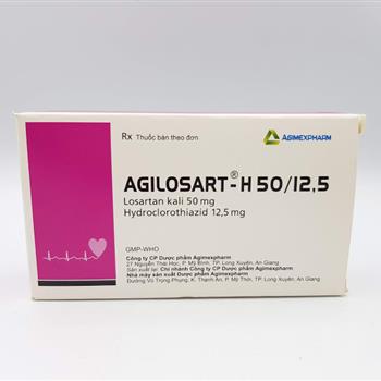Agilosart-H 50/12.5 Mỗi viên: Losartan kali 50mg, hydroclorothiazid 12,5mg. Tá dược vừa đủ 1 viên