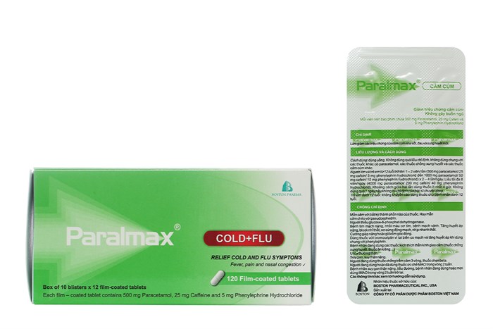 Thuốc giảm đau hạ sốt Paralmax cảm cúm hộp 120 viên