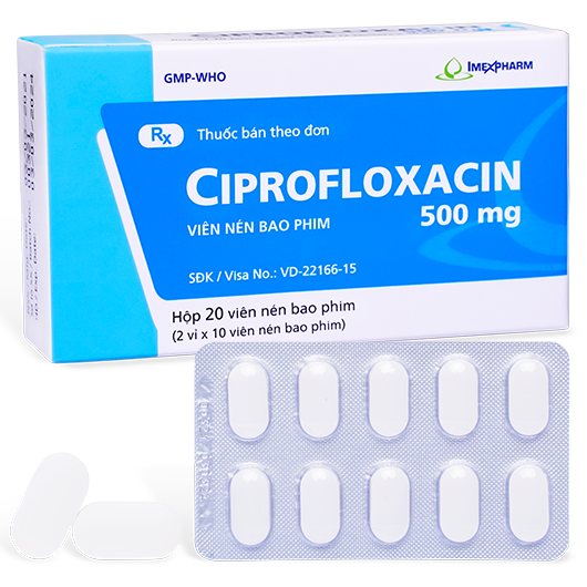 Thuốc kháng sinh Ciprofloxacin 500mg (IMEXPHARM) hộp 20 viên