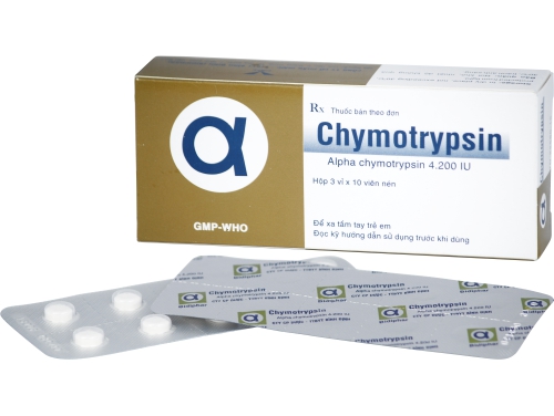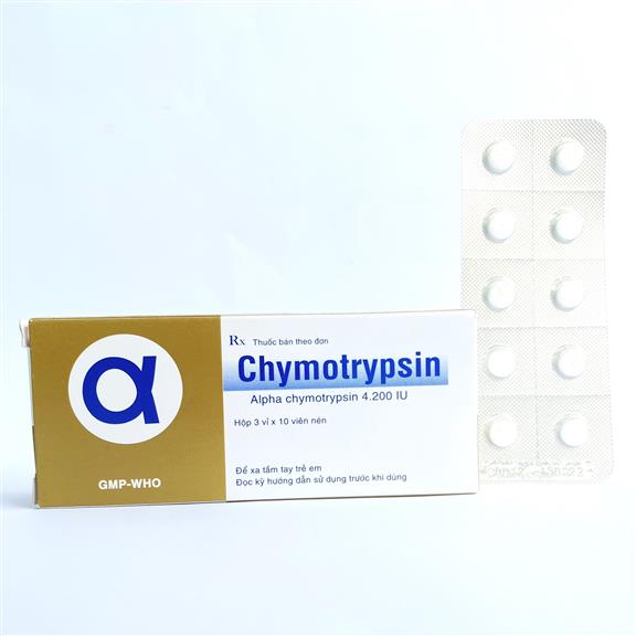 Alpha chymotrypsin là enzym thủy phân protein có tác dụng xúc tác chọn lọc đối với các liên kết peptid ở liền kề các acid amin có nhân thơm. Thuốc được sử dụng nhằm giảm viêm và phù mô mềm do áp xe và loét, hoặc do chấn thương và giúp làm lỏng các dịch tiết đường hô hấp trên ở người bệnh hen, viêm phế quản, các bệnh phổi và viêm xoang