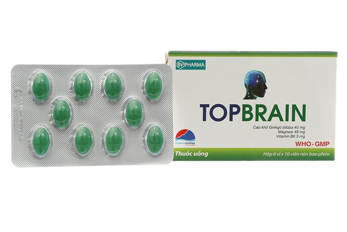 Viên nén bao phimTOPBRAIN được dùng để: - Tăng tuần hoàn não, cải thiện các bệnh lý liên quan đến thiểu năng tuần hoàn não như: đau đầu, chóng mặt, ù tai, hoa mắt, mất ngủ, giảm thính lực. - Giúp tăng cường trí nhớ, tăng khả năng nhận thức cho người lớn tuổi. - Bổ sung cho các trường hợp thiếu hụt Magnesi, suy nhược thần kinh, tăng cường khả năng chống lại stress.