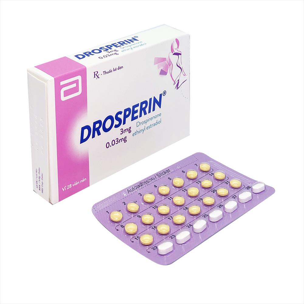 Cách dùng Uống trọn viên thuốc với một ly nước. Liều dùng Uống 1 viên mỗi ngày, cùng 1 thời điểm trong mỗi ngày, 28 ngày liên tục theo thứ tự được chỉ trên hộp nhựa chứa vỉ thuốc. Viên màu be đầu tiên (có ghi rõ số thứ tự trên hộp nhựa) phải được uống vào ngày đầu tiên hành kinh (ngày ra kinh) của chu kỳ kinh nguyệt. Thứ tự các viên thuốc rất quan trọng, luôn uống những viên màu be (viên thuốc có hoạt tính), khi hết những viên này, mới đến những viên màu trắng (viên thuốc không hoạt tính). Luôn giữ sẵn thêm một vỉ khác để chắc chắn bạn sẽ không bị trễ viên đầu tiên của chu kỳ kế tiếp. Nguy cơ có thai tăng trong trường hợp bạn quên uống một vài viên thuốc màu be (viên có hoạt tính). Trong trường hợp quên uống, phải theo chỉ dẫn của bác sĩ, dược sĩ hoặc theo các khuyến cáo chung sau đây: - Nếu bạn quên 1 viên có hoạt tính, uống ngay khi bạn nhớ, cho dù uống 2 viên trong cùng một ngày, và tiếp theo uống những viên thuốc kế tiếp theo lịch trình bình thường. Sử dụng thêm 1 phương pháp tránh thai không nội tiết hoặc tránh thai cơ học (bao cao su, màng chắn âm đạo) trong 7 ngày kế tiếp, ngoài việc phải tiếp tục dùng các viên Drosperin như lịch trình bình thường. - Nếu bạn quên uống 2 viên có hoạt tính liên tiếp trong tuần thứ nhất hoặc tuần thứ hai, thì uống 2 viên mỗi ngày trong 2 ngày liên tiếp tiếp theo, ở thời điểm bình thường. Sau đó uống các viên tiếp theo như lịch trình bình thường mỗi ngày 1 viên. Trong trường hợp này, nguy cơ rụng trứng gia tăng, do đó bạn nên sử dụng thêm phương pháp tránh thai khác không nội tiết hoặc tránh thai cơ học (bao cao su, màng chắn âm đạo) trong 7 ngày kế tiếp, ngoài việc phải tiếp tục dùng các viên Drosperin còn lại như bình thường. - Nếu bạn quên uống 2 viên có hoạt tính liên tiếp trong tuần thứ ba, hoặc nếu bạn quên uống trên 3 viên có hoạt tính liên tiếp trong vòng 3 tuần đầu tiên: Bỏ các viên còn lại của vỉ thuốc và bắt đầu với viên đầu tiên của một vỉ thuốc mới ngay trong ngày kế tiếp. Bạn nên sử dụng thêm phương pháp tránh thai không nội tiết khác hoặc tránh thai cơ học (bao cao su, màng chắn âm đạo) trong vòng 7 ngày sau khi quên uống viên thuốc. Có khả năng bạn sẽ không có kinh trong tháng đó, nhưng nếu không có kinh trong 2 tháng liên tiếp, hãy khám bác sĩ để xác định có mang thai hay không. Những sai sót trong khi uống những viên không hoạt tính (những viên màu trắng) có thể bỏ qua được. Nhưng viên có hoạt tính (màu be) đầu tiên trong vỉ thuốc kế tiếp phải được uống vào ngày thích hợp theo đúng lịch trình.