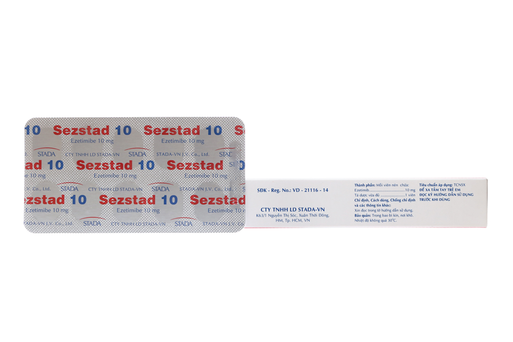 Cách dùng Sezstad 10 được dùng bằng đường uống, bất kỳ lúc nào trong ngày, cùng hoặc không cùng với thức ăn. Bệnh nhân nên có chế độ ăn phù hợp, ít chất béo và tiếp tục chế độ ăn này trong quá trình điều trị. - Phối hợp với các thuốc hạ lipid khác Ezetimib có thể uống cùng với thuốc nhóm statin (đối với bệnh nhân tăng lipid huyết nguyên phát) hoặc fenofibrat (đối với bệnh nhân tăng lipid huyết kết hợp) để đạt hiệu quả điều trị cao hơn. Liều dùng hàng ngày có thể uống cùng lúc với thuốc nhóm statin hoặc fenofibrat theo liều khuyến cáo của từng thuốc. - Phối hợp với thuốc hấp thu acid mật Nên uống ezetimib ít nhất trước 2 giờ hoặc sau 4 giờ khi dùng thuốc hấp thu acid mật. Liều lượng Liều đề nghị: Một viên mỗi ngày. - Trẻ em và trẻ vị thành niên từ 10 tuổi trở lên: Không cần chỉnh liều. -Trẻ em dưới 10 tuổi: Không khuyến cáo dùng ezetimib vì chưa có đầy đủ thông tin về tính an toàn và hiệu quả của thuốc đối với trẻ dưới 10 tuổi. - Bệnh nhân bị suy gan hoặc suy thận: Không cần chỉnh liều đối với bệnh nhân bị suy gan nhẹ hoặc suy thận. - Người cao tuổi: Không cần chỉnh liều.